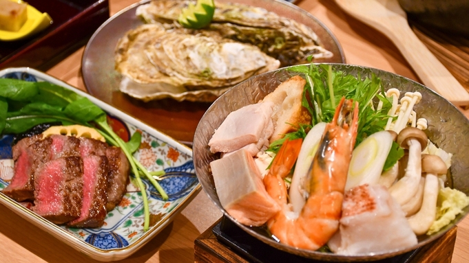 【冬の旬菜会席~嵯峨】冬はあったか寄せ鍋!旬の牡蠣に牛タンも〇季節の美味を手軽に楽しむおまかせ会席